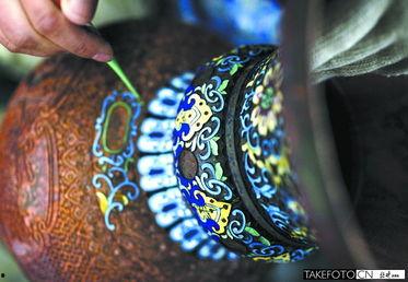 在胎体上,匠人用细如发丝的铜丝按照图案进行掐制。这个过程需要耐心和细心,一丝不苟。